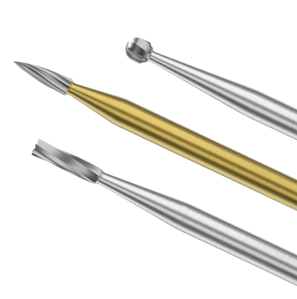 Made from surgical stainless steel, carbide burs resist wear and corrosion, allowing safe autoclaving and consistent durability in repeated clinical use.