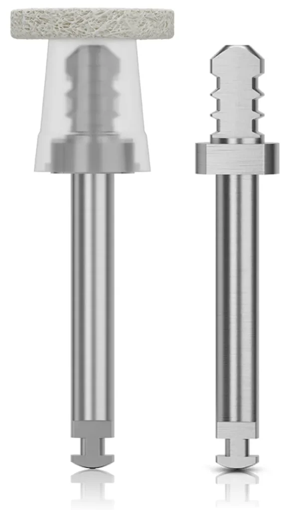 Mandrels attach felt discs to a contra-angle handpiece, providing a stable fit and allowing fast, effortless disc changes during the procedure.