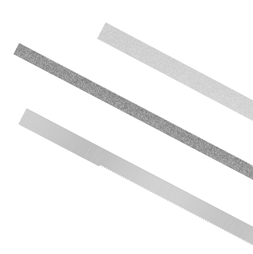 Fine serrations increase cutting precision, helping initiate access, guide the strip accurately, and refine proximal surfaces with minimal effort.