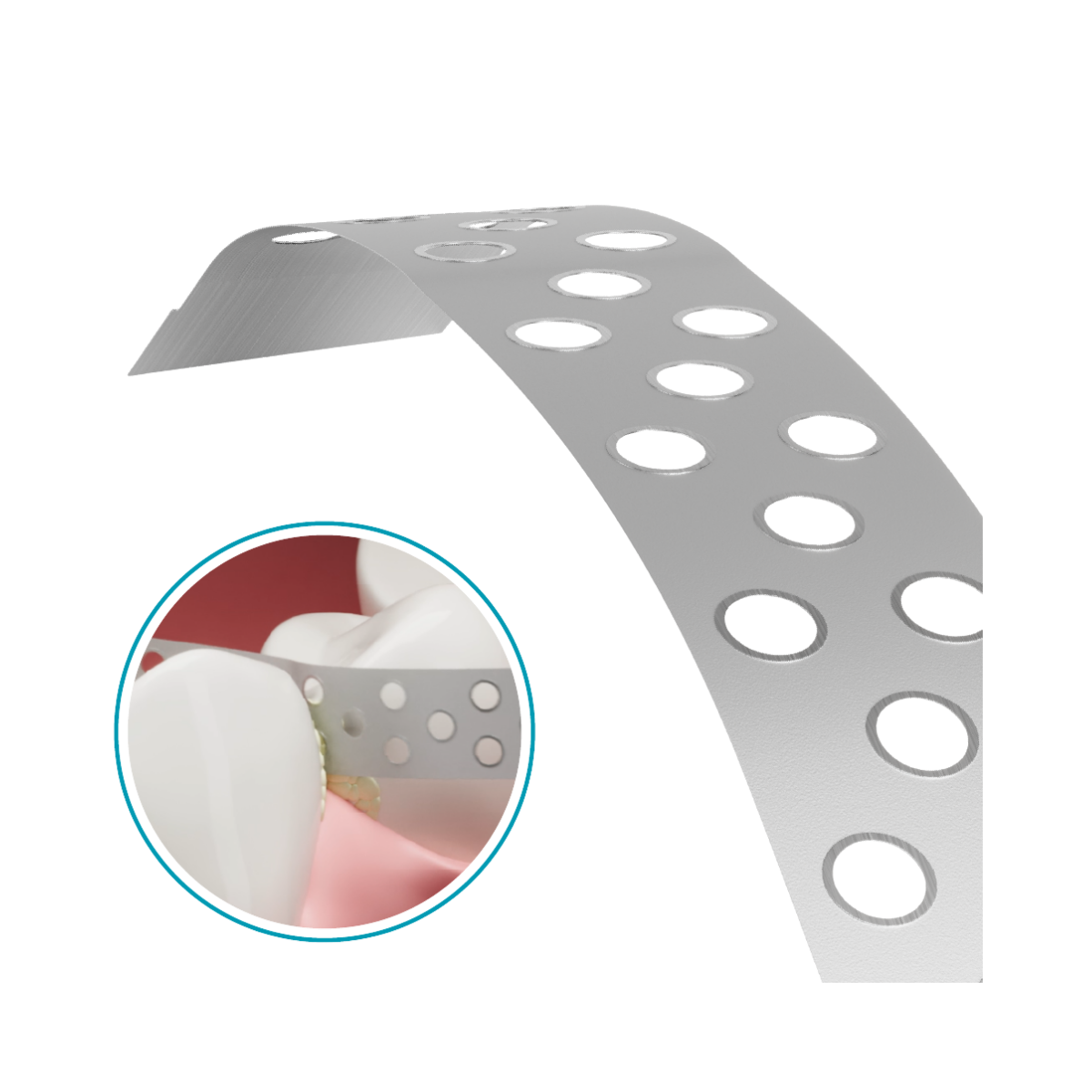 Saw blade designed to remove excess material in interproximal areas.